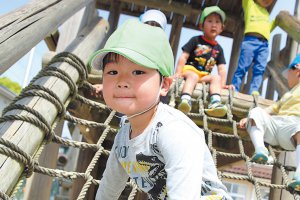 子どもたちが自ら遊びにチャレンジし、友達と仲良く遊ぶ。登る・滑る・ぶら下がる・バランスをとるなど、体を動かすことで運動機能を向上させ、心身ともに健全に育つよう心掛けています。