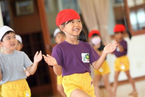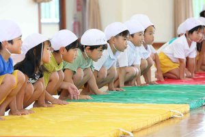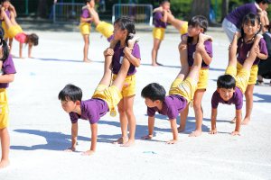 健やかな体と心の育成を目指し、走る・跳ぶ・投げる・転がるなどの基本動作はもちろん一生懸命にがんばった後の爽快感、できないことができるようになった瞬間の達成感、たくさんの喜びを体得させ、バランスのとれた体づくりを指導します。